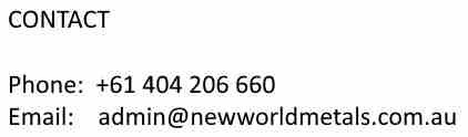 +61 404 206 660 admin@newworldmetals.com.au